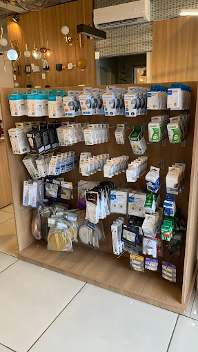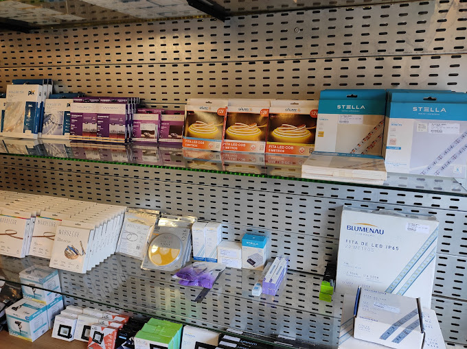 Espaço de Exposição: Produtos organizados e acessíveis para que você veja de perto todas as opções em disjuntores, cabos, luminárias, sensores e muito mais.